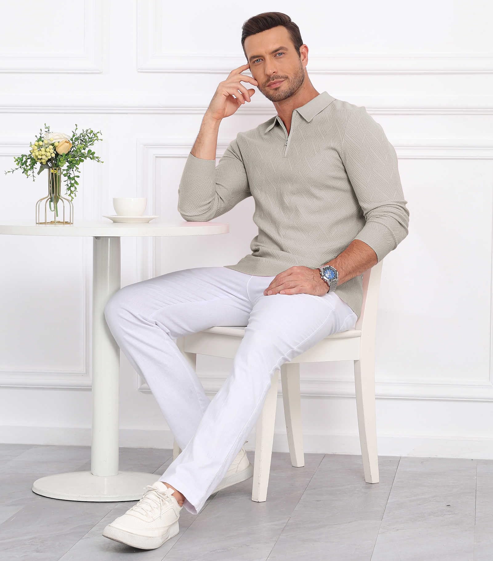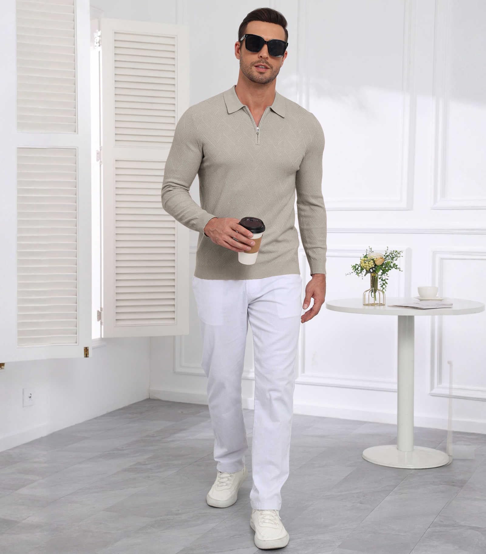 | Men's Slim Fit Polo Sweater Lightwe | Khaki | Large | 6 |