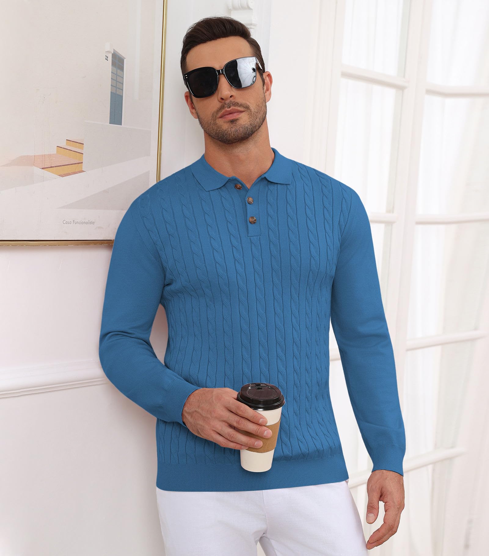 Men's Polo Sweater Soft Warm Casual Dark Blue Large 5