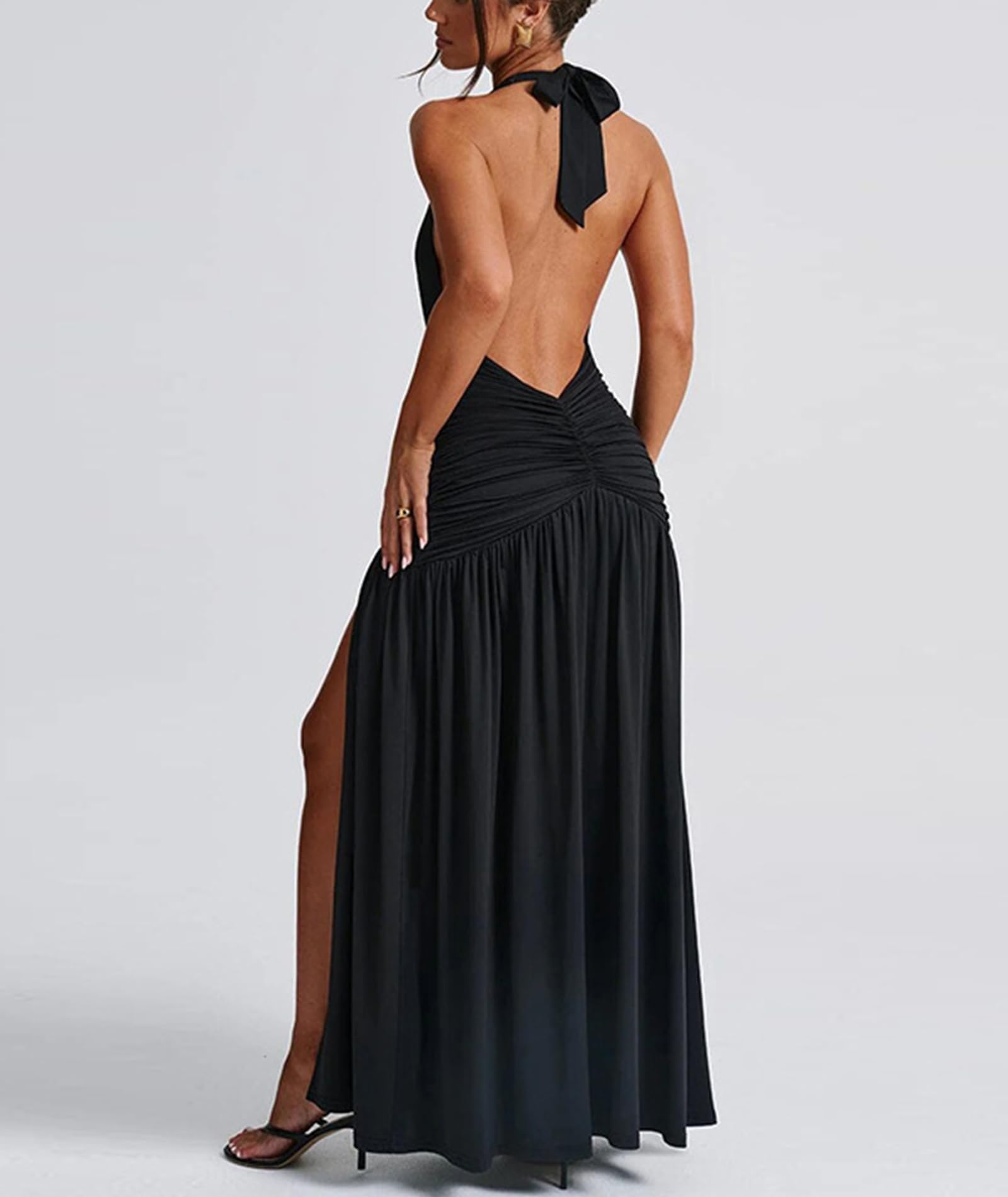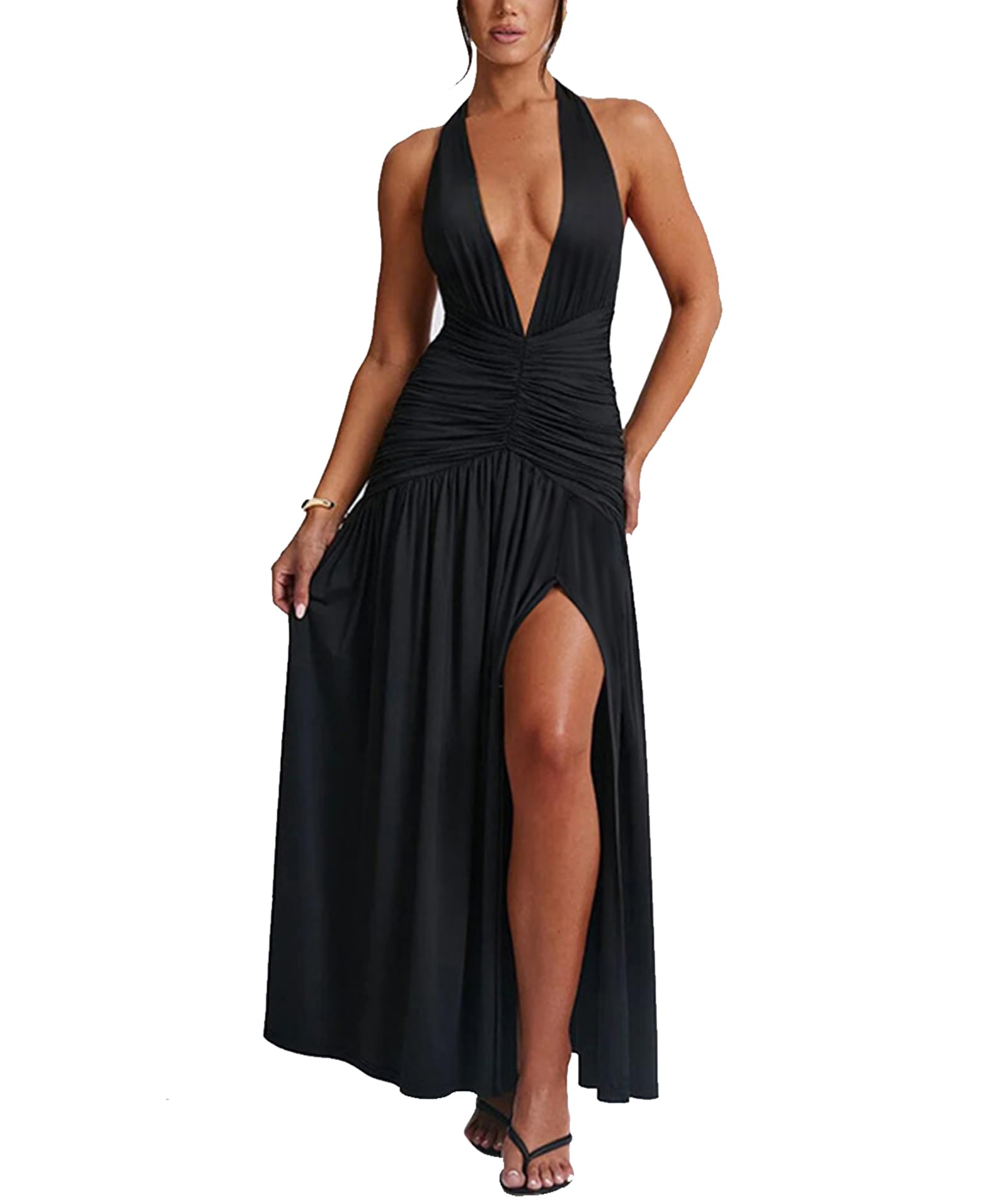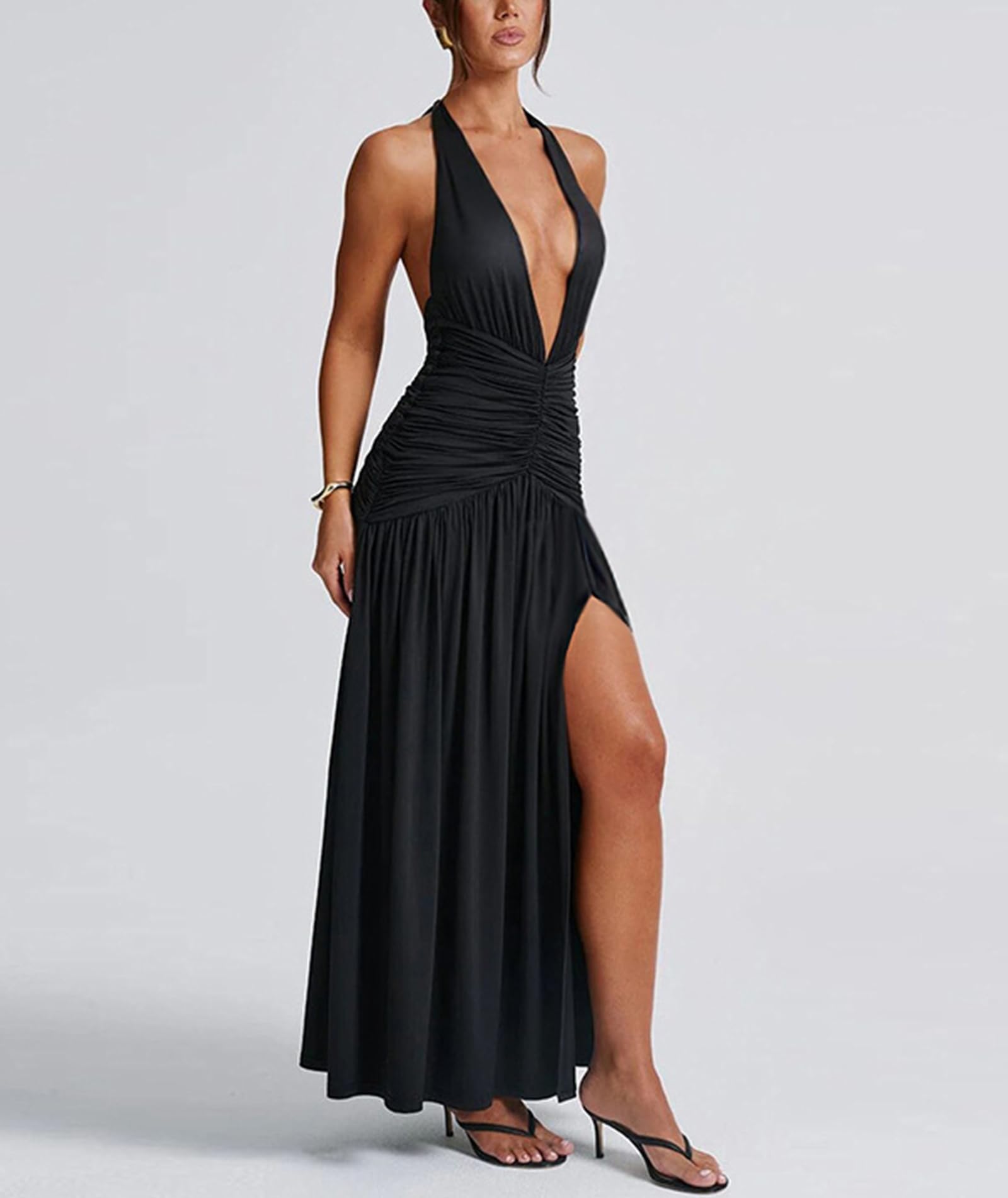 Sexy Halter Deep V Neck Maxi Dress Black X-Large 2