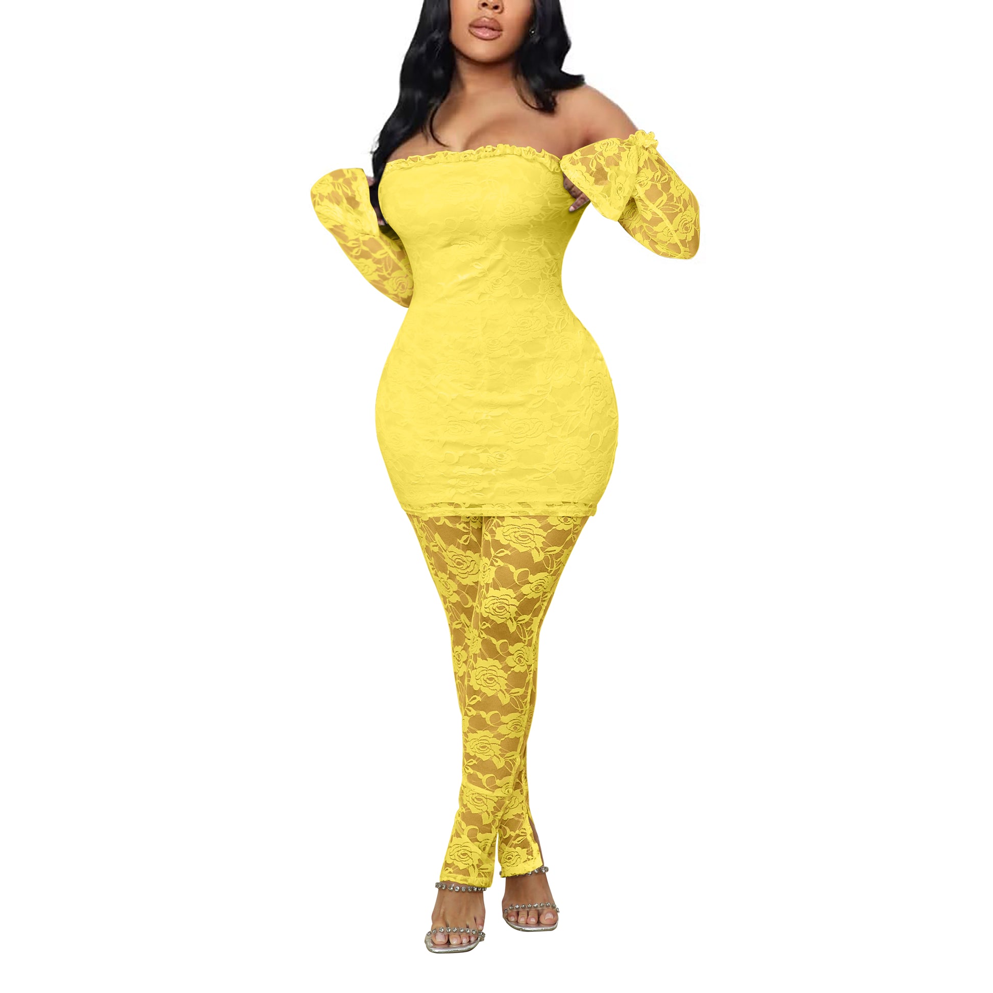 lace two piece outfits Yellow Medium 6