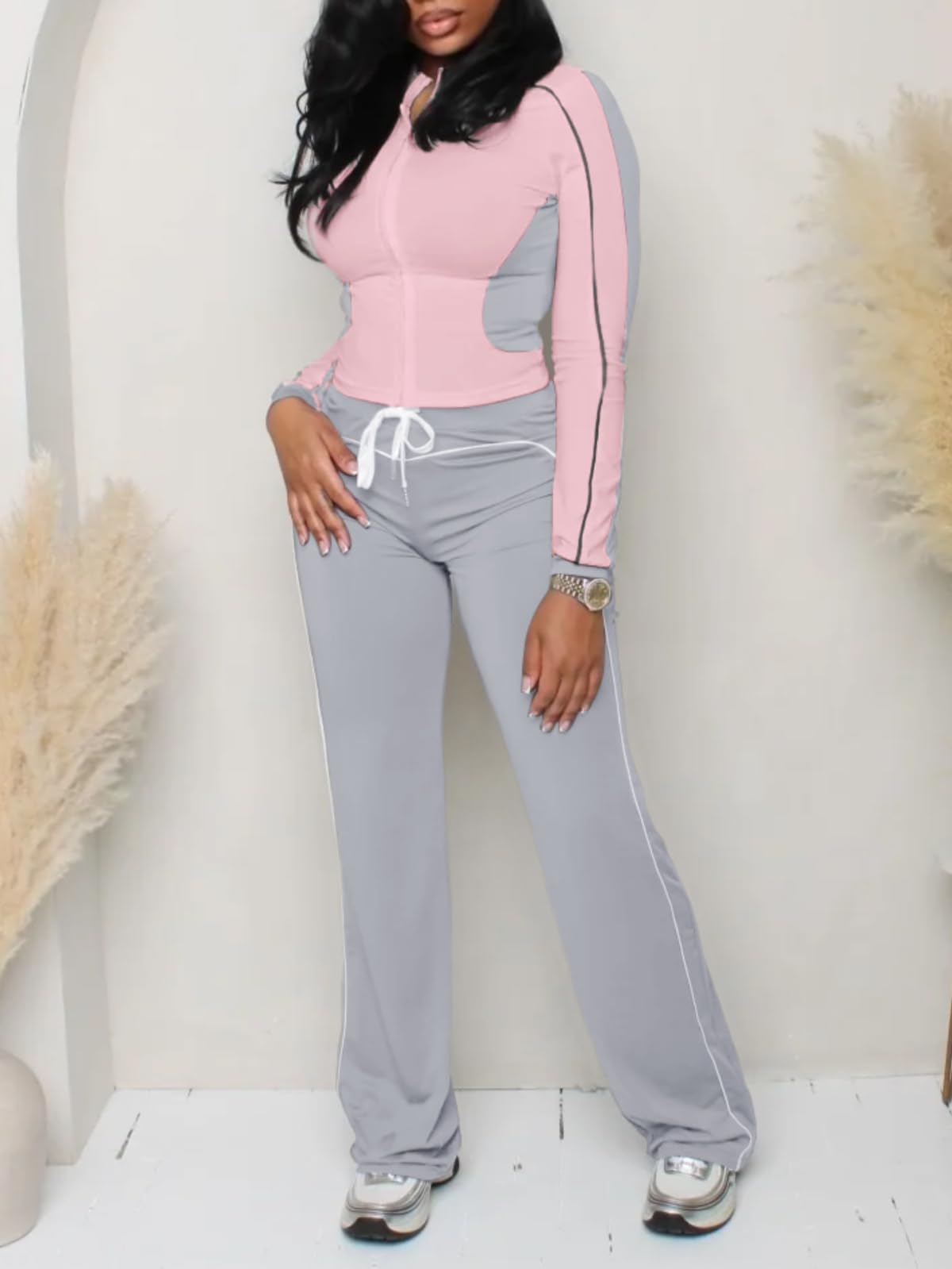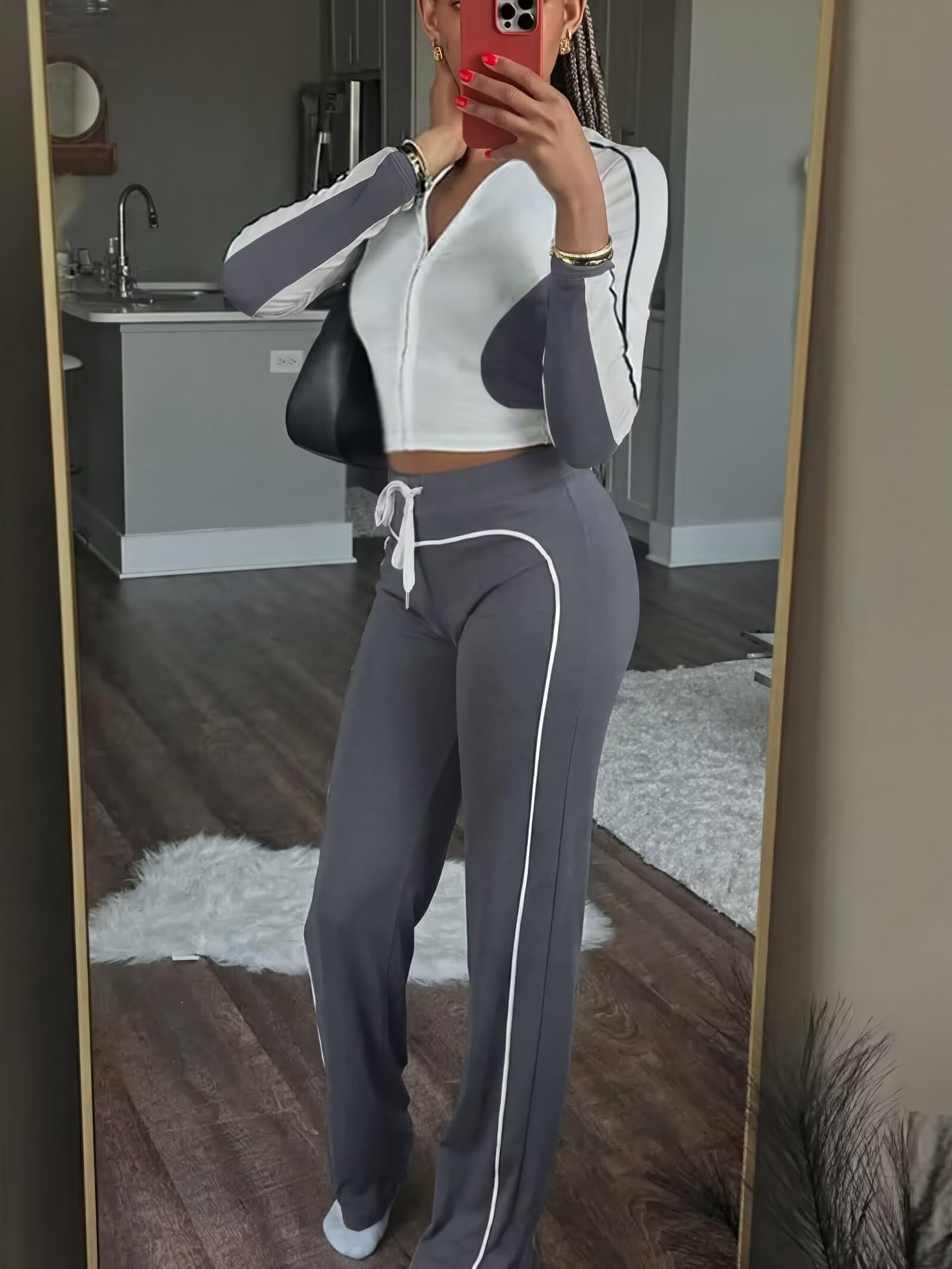| women casual 2 piece outfits | Grey | Large | 3 |