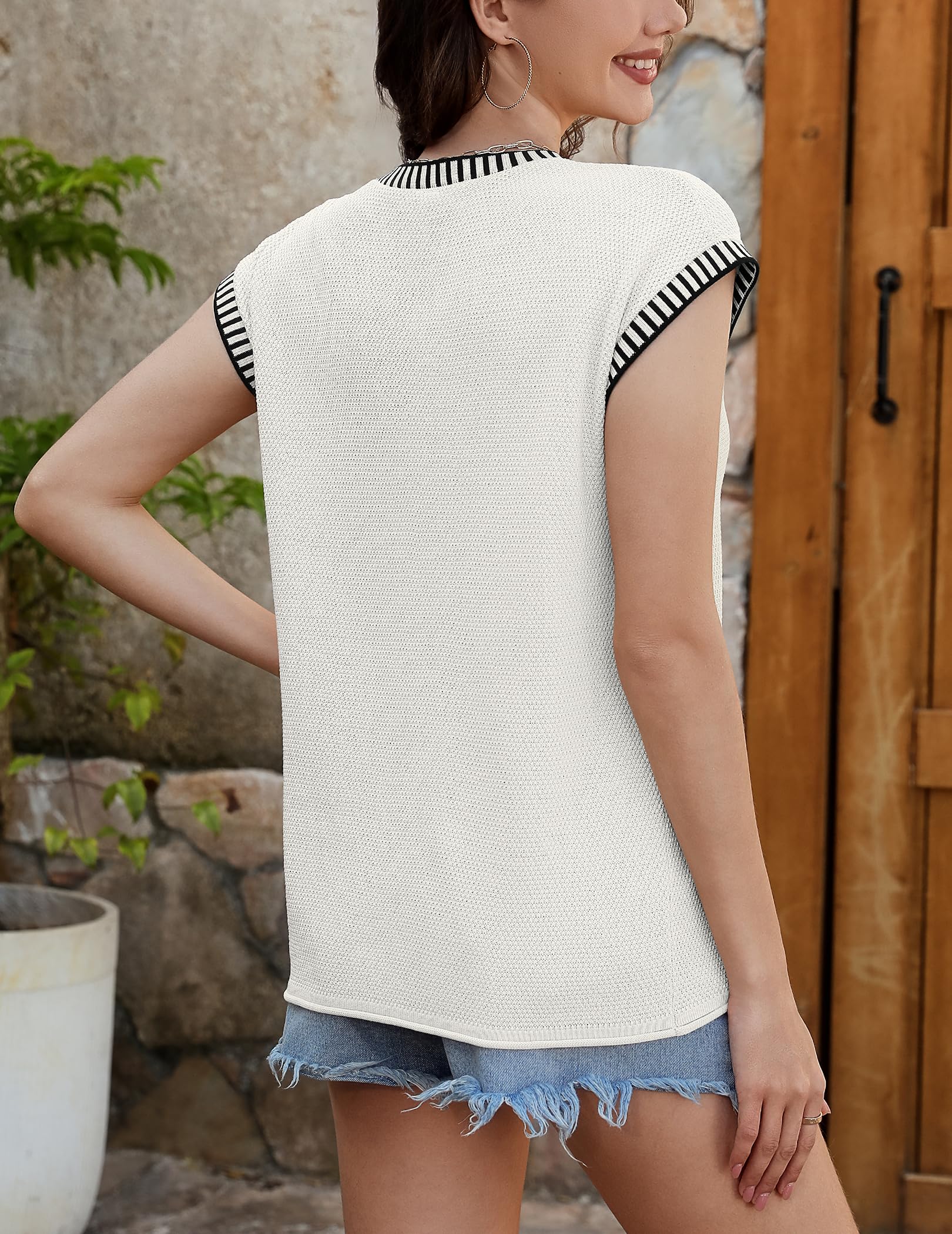 | Womens Cap Sleeve Sweater Vest | White-black | Large | 2 |