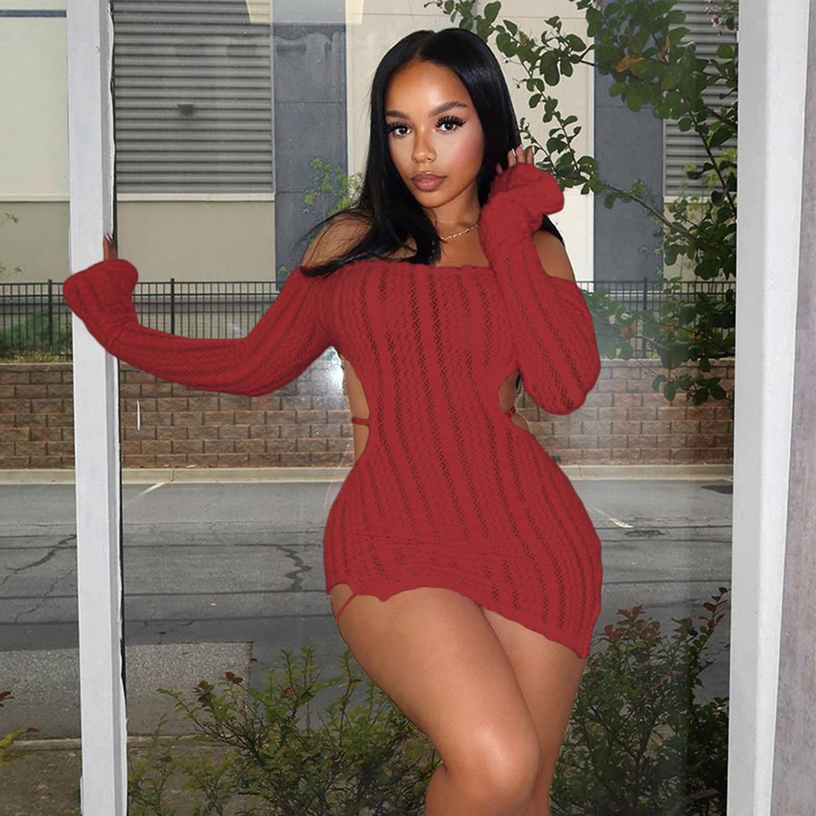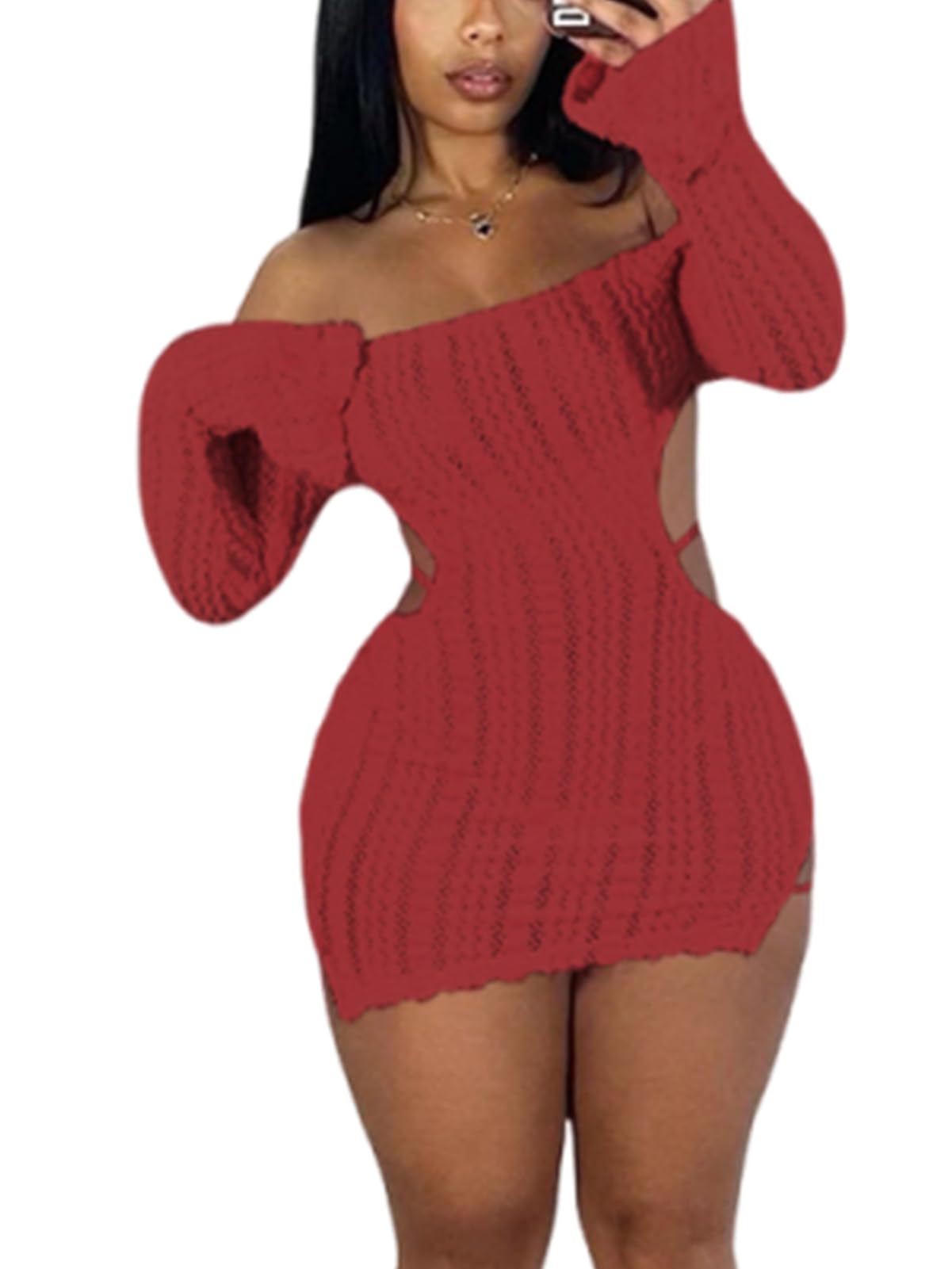 | Fuzzy Mini Dress for Women | Wine Red | Large | 4 |