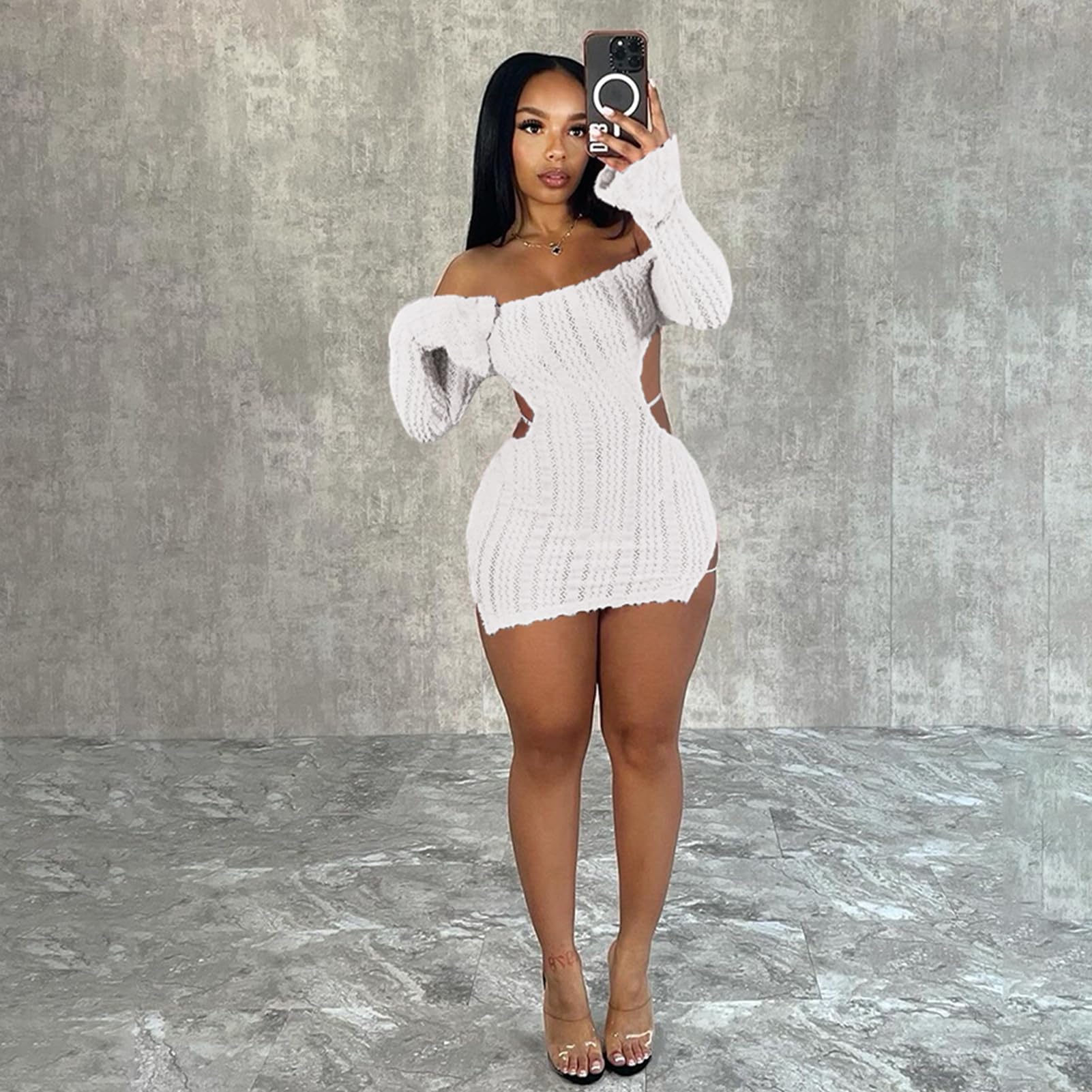 | Fuzzy Mini Dress for Women | White | Large | 2 |