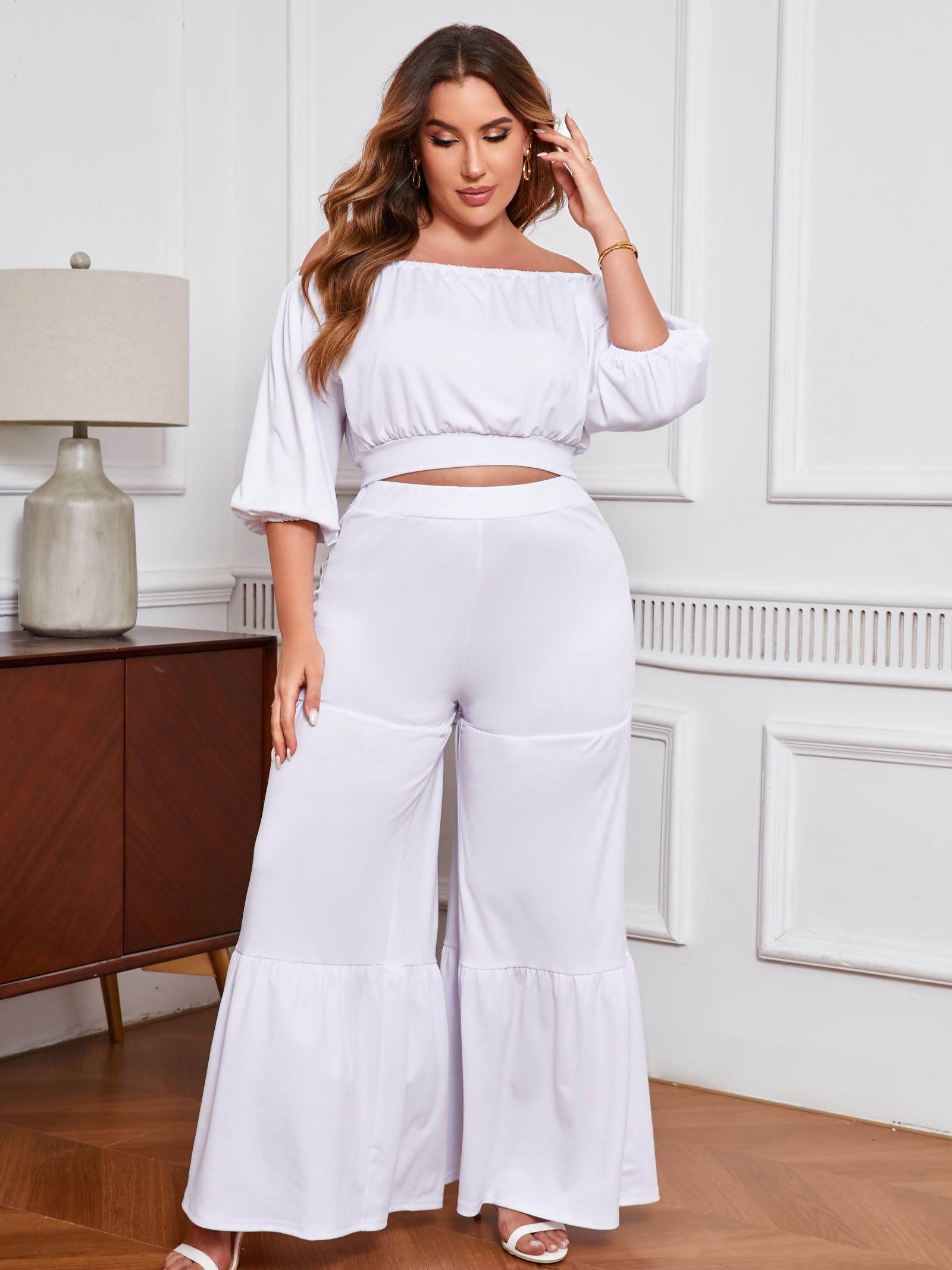 Women Two Piece Pant Sets White X-Large 4