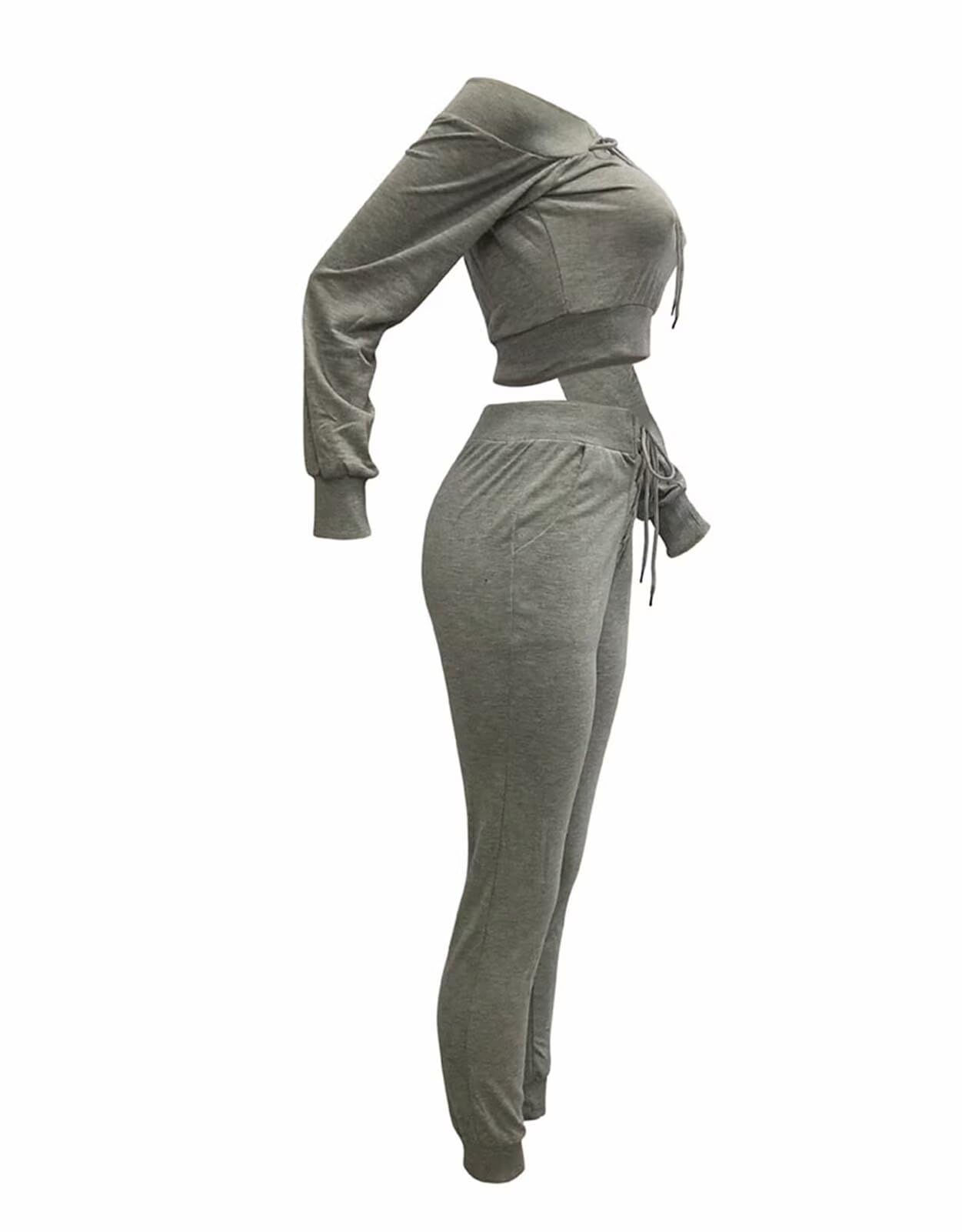 Womens Off Shoulder Pants Sets Grey Medium 2
