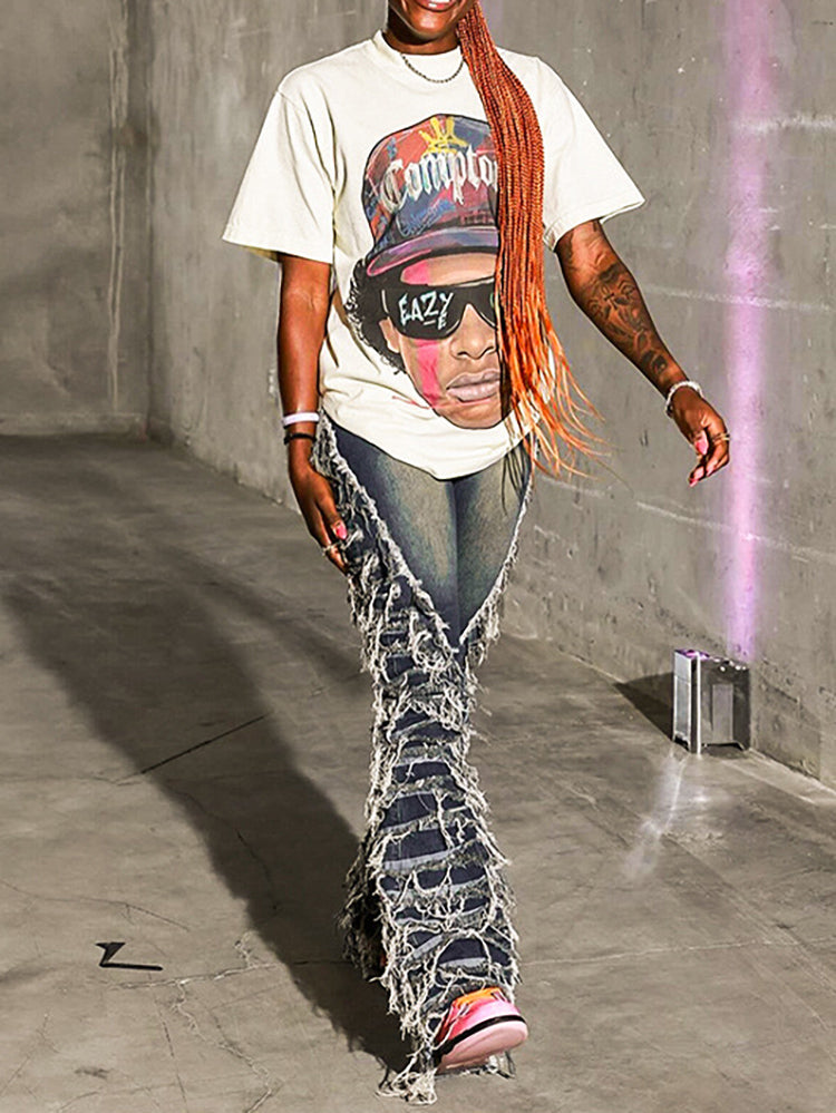 Plus Size Trendy Slimming Denim Wide Leg Pants