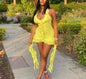 Sleeveless Backless Tassel Ruched Ruffle Mini Dress