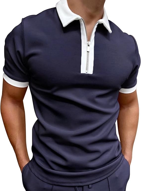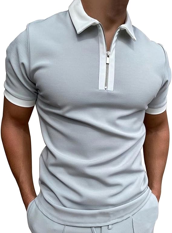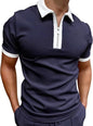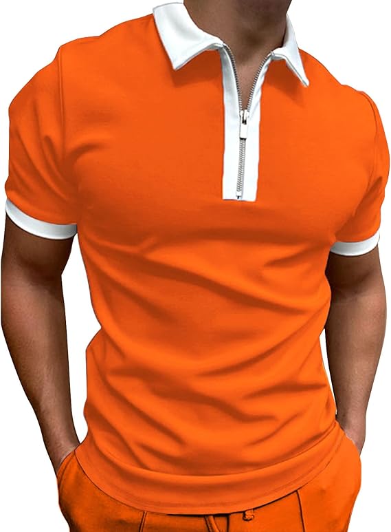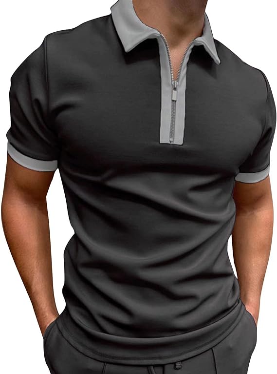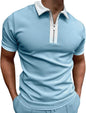 Mens Patchwork Zipper Short Sleeve Polo Shirts