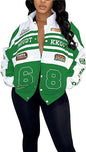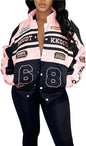 Detachable Letter Graphic Racer Colorblock Baseball Coat
