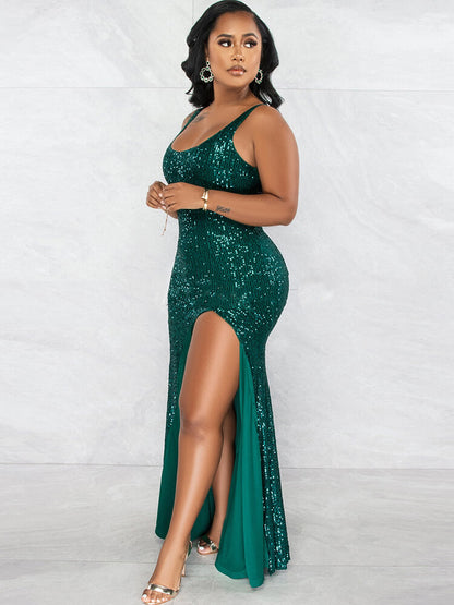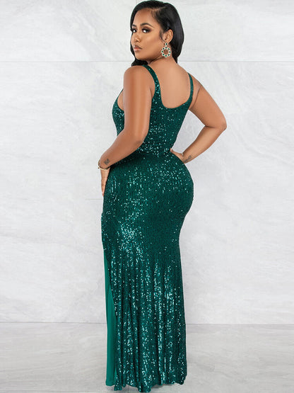 Sequin Sleevelesss Split Bodycon Maxi Dress