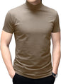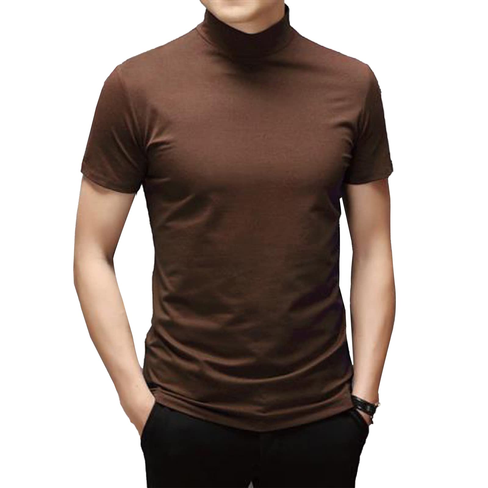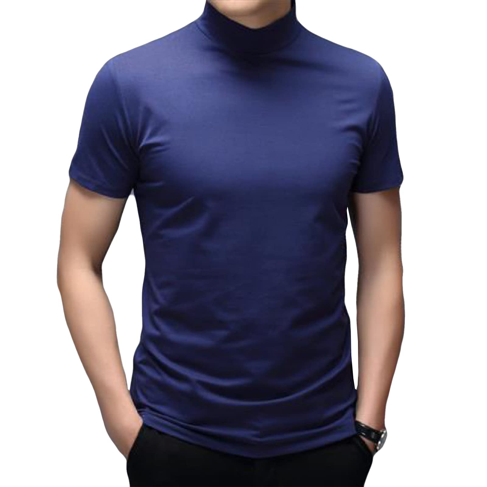 Feature: Slim fit t-shirt, solid color, basic design, mock neck, short sleeve, fashion and casual.