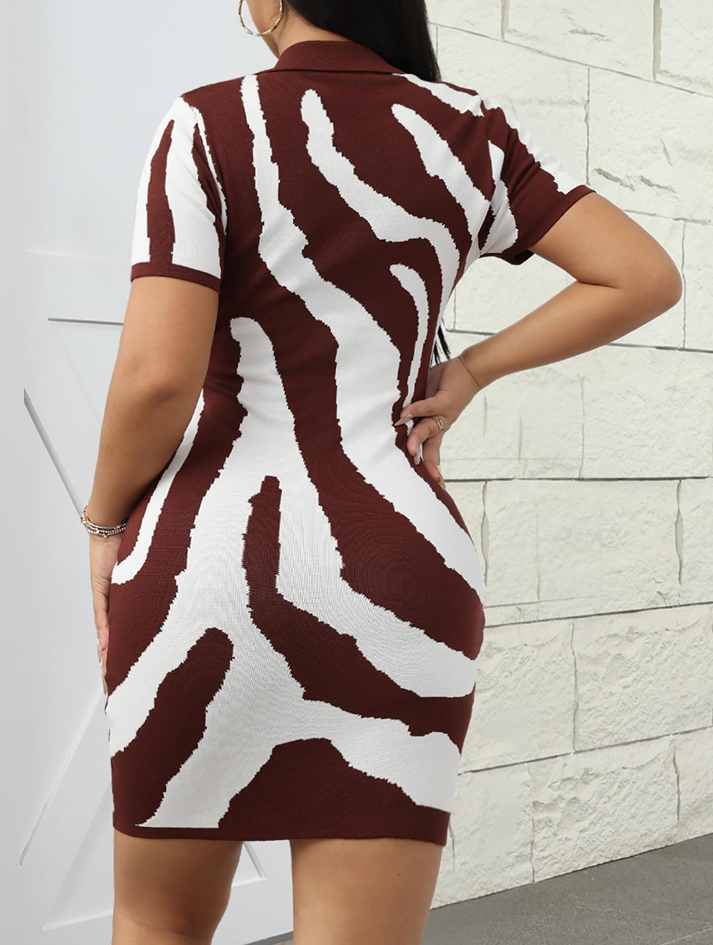 This high-quality, lightweight knit dress for women features a bodycon fit, short sleeves, and a V-neck collar. Its zebra striped design makes it perfect for a night out at the club, while its comfortable fabric makes it suitable for daily wear.