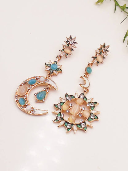 Star Sun Moon Rhinestone Crystal Stud Dangle Earrings
